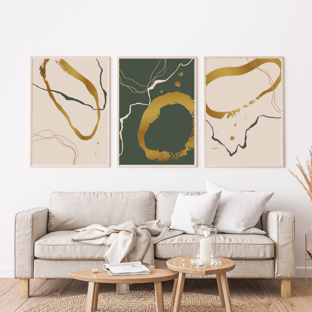 Harmonie Vert – Triptyque Abstrait Moderne pour Salon